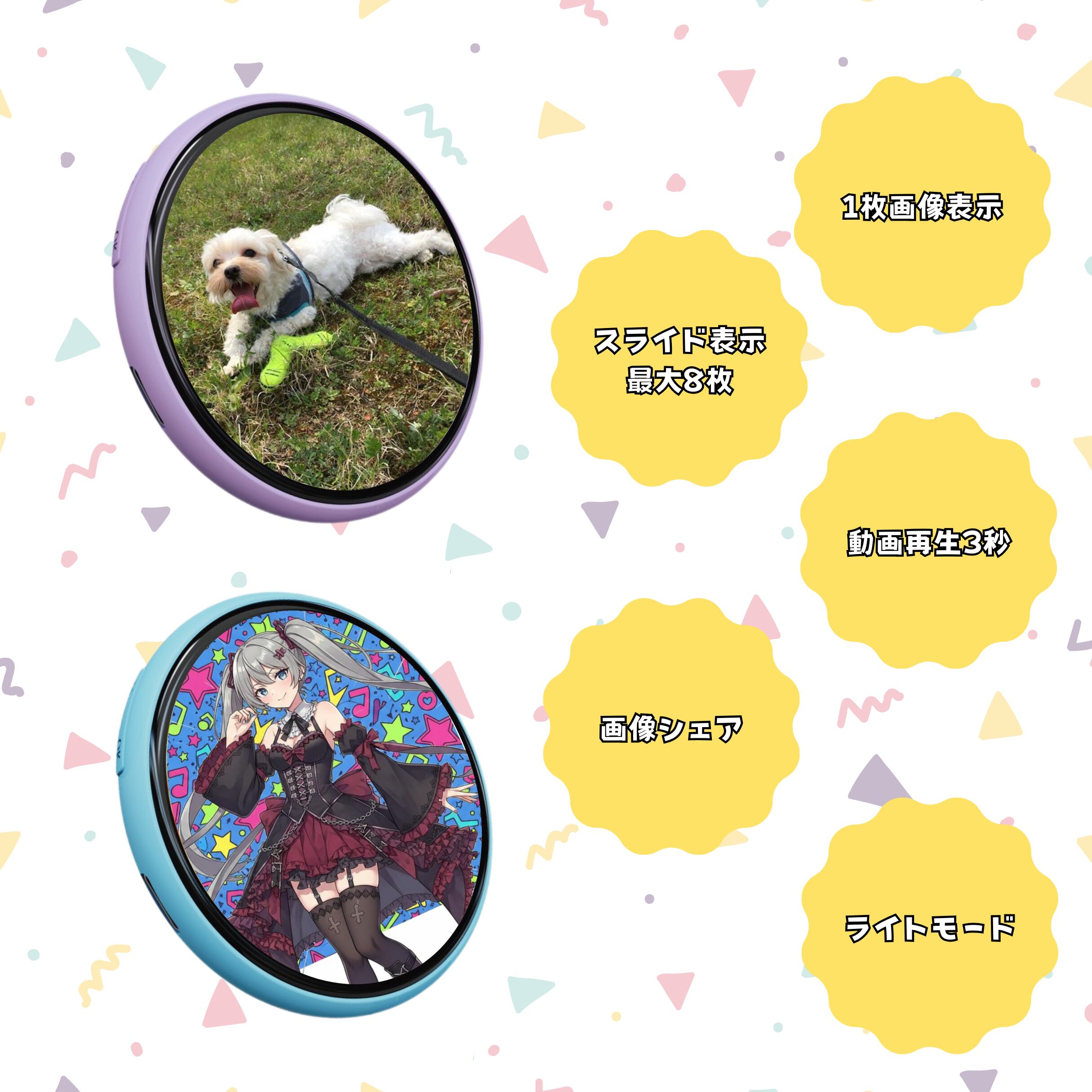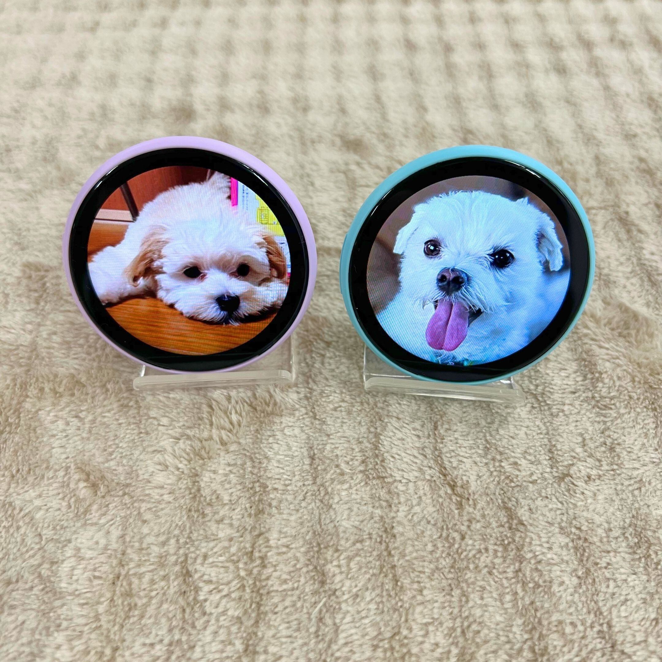 デジタル缶バッジは、愛するうちの子や推しの写真を手軽に持ち歩けるスマートデジタルバッジです。スマホの写真を転送し、簡単に切り替えることができるので、いつでもにお気に入りの瞬間を楽しむことができます。重さはわずか28gと軽量で、持ち歩きの負担になりません。PCのそばに置けば、お気に入りの写真を眺めながら作業ができます。推し活にもおすすめです。